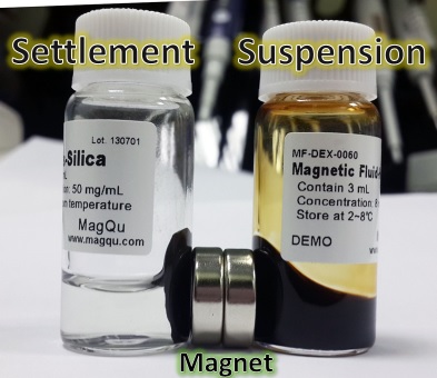 We have the magnetic beads of high suspension or settlement. For high suspension we have magnetic reagent or fluid. For settlement we have Qbeads. About Qbeads-Silica we can control difference sedimentation rate.