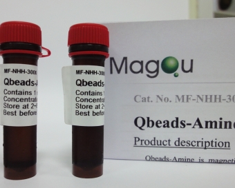 - Qbeads with amine (-NH2) functional groups on the surface.
