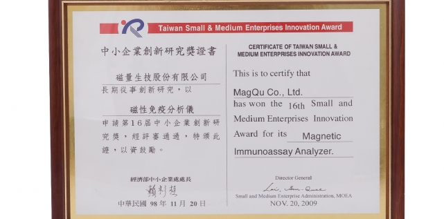 表揚磁減量免疫檢驗技術的創新性